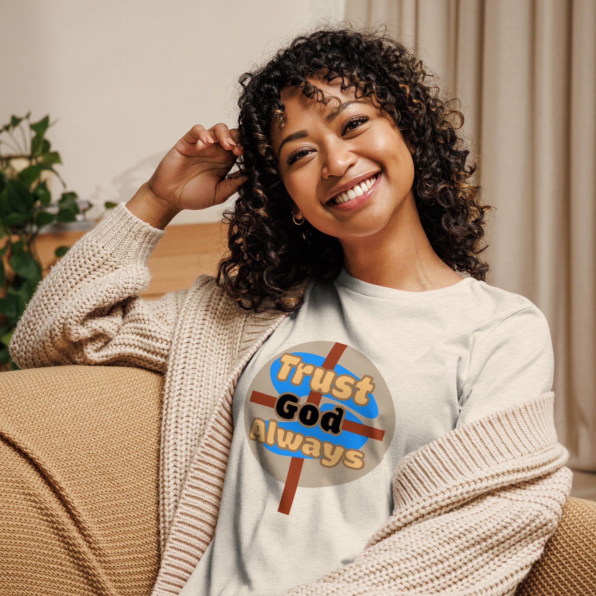 Trust God Women's Relaxed Fit Tee, Heather Prism Natural